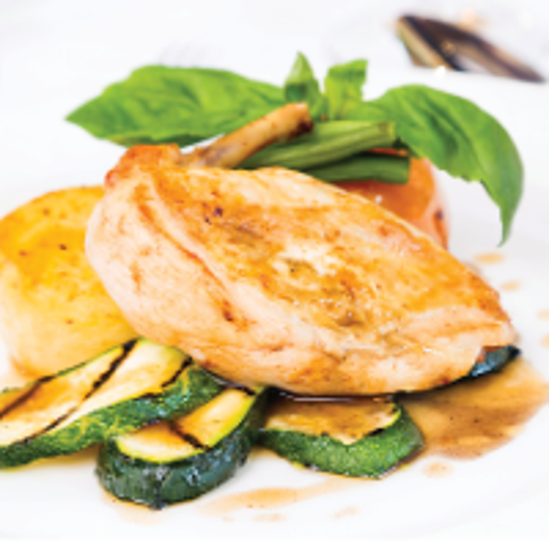 Chicken Breast, Wilted Spinach, Baby Carrots, Roasted Garlic & Rosemary Potatoes, Port Wine Reduction (GFO)